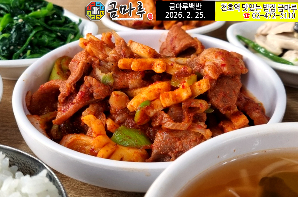 | [천호역 금마루 식당] 2026년 2월 26일 목요일 맛있는 금마루 백반 메뉴 안내 (0) | 2026.02.26 |