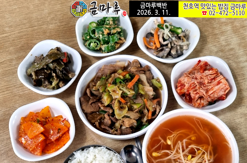 < 2026년 3월 11일 수요일 천호역 금마루 백반 메뉴 구성 >