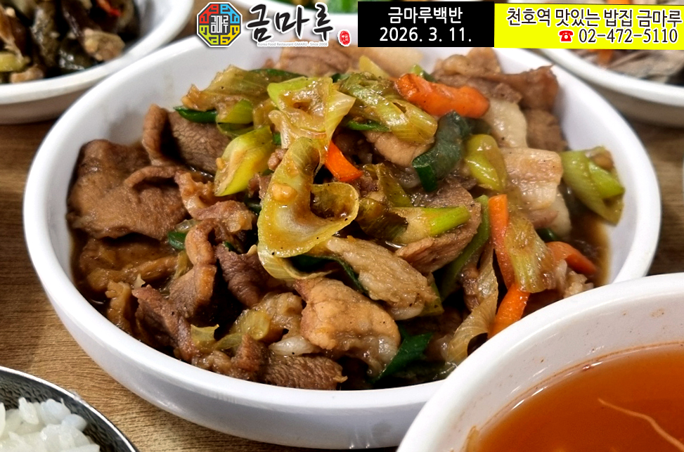 | [천호역 금마루 식당] 2026년 3월 13일 금요일 맛있는 금마루 백반 메뉴 안내 (0) | 2026.03.13 |
